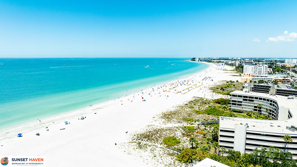 Browse through Sunset Haven, a luxury two bedroom , two bathroom condo with private beach and pools overlooking Boca Ciega Bay in St Petersburg.